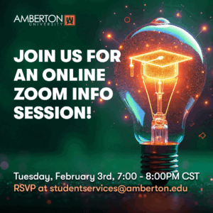 Are you ready to take the next step in your educational journey? Join us on Tuesday, February 3rd at 7 PM CST for an informative online session about our Spring session at Amberton University!